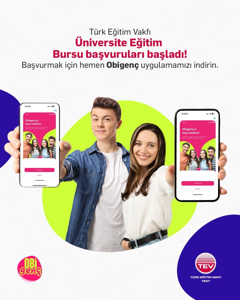 Sevgili Gençler, TEV Üniversite Eğitim Bursu başvuruları açıldı! Başvurular bu yıl da Obigenç mobil uygulamamız üzerinden alınacak. Obigenç’i, Google Play veya App Store’dan ücretsiz olarak indirip başvurunuzu tamamlayabilirsiniz. Başvuru Tarihi: 15 Eylül-9 Ekim TEV Üniversite Eğitim Bursu başvurusuyla ilgili detaylar için Tıklayınız ...