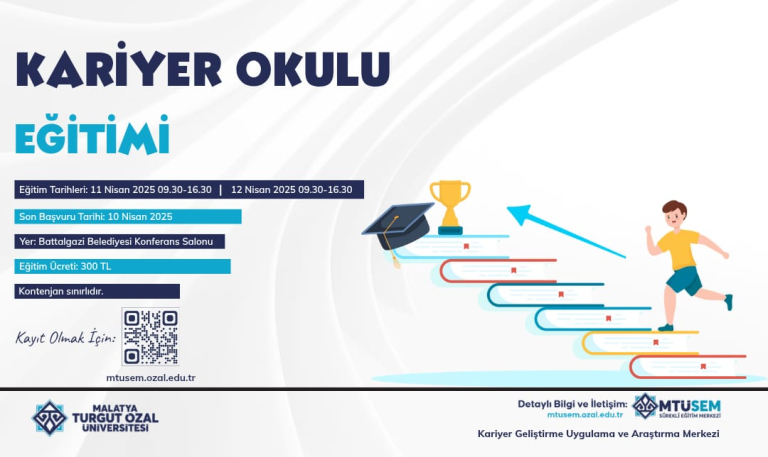 Malatya Turgut Özal Üniversitesi Kariyer Geliştirme Uygulama ve Araştırma Merkezi (MTÜSEM) tarafından düzenlenen Kariyer Okulu Eğitimi ile kendinizi geliştirme fırsatını kaçırmayın!