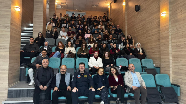 Üniversitemizde kariyer ve havacılık tutkunlarını bir araya getiren “Hayallerimin Hür Kanatları” başlıklı söyleşi programı yoğun katılımla gerçekleştirildi. Programın konuğu, Türkiye’nin ilk deneysel test pilotu olarak görev yapan Murat Özpala oldu.